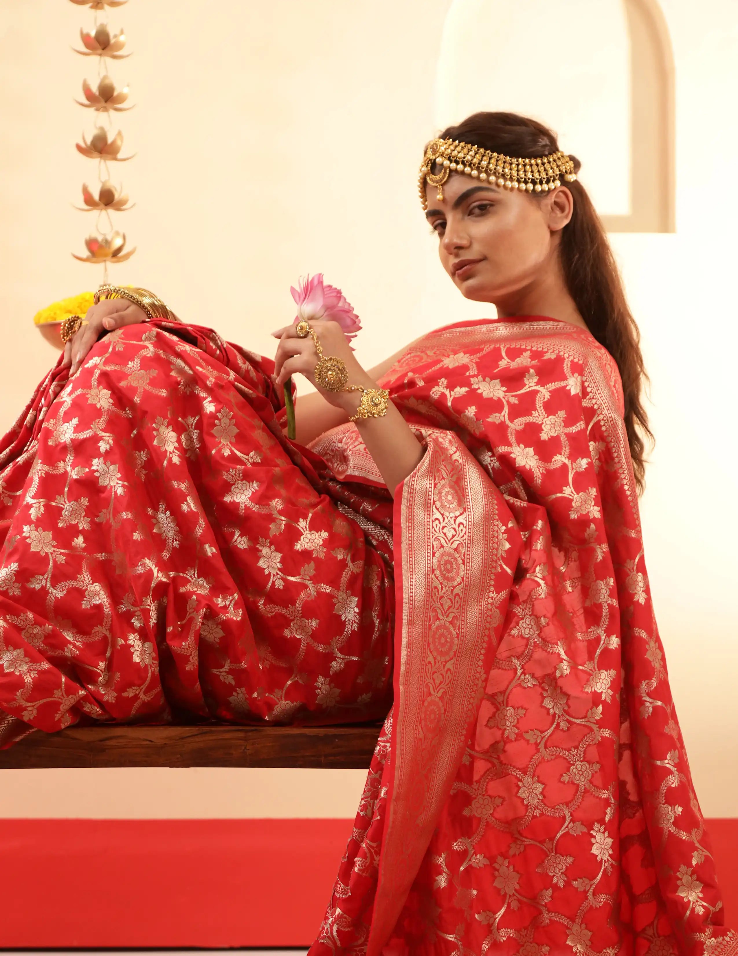 Banarasi Silk Heavy Zari Work - Tangerine Orange -